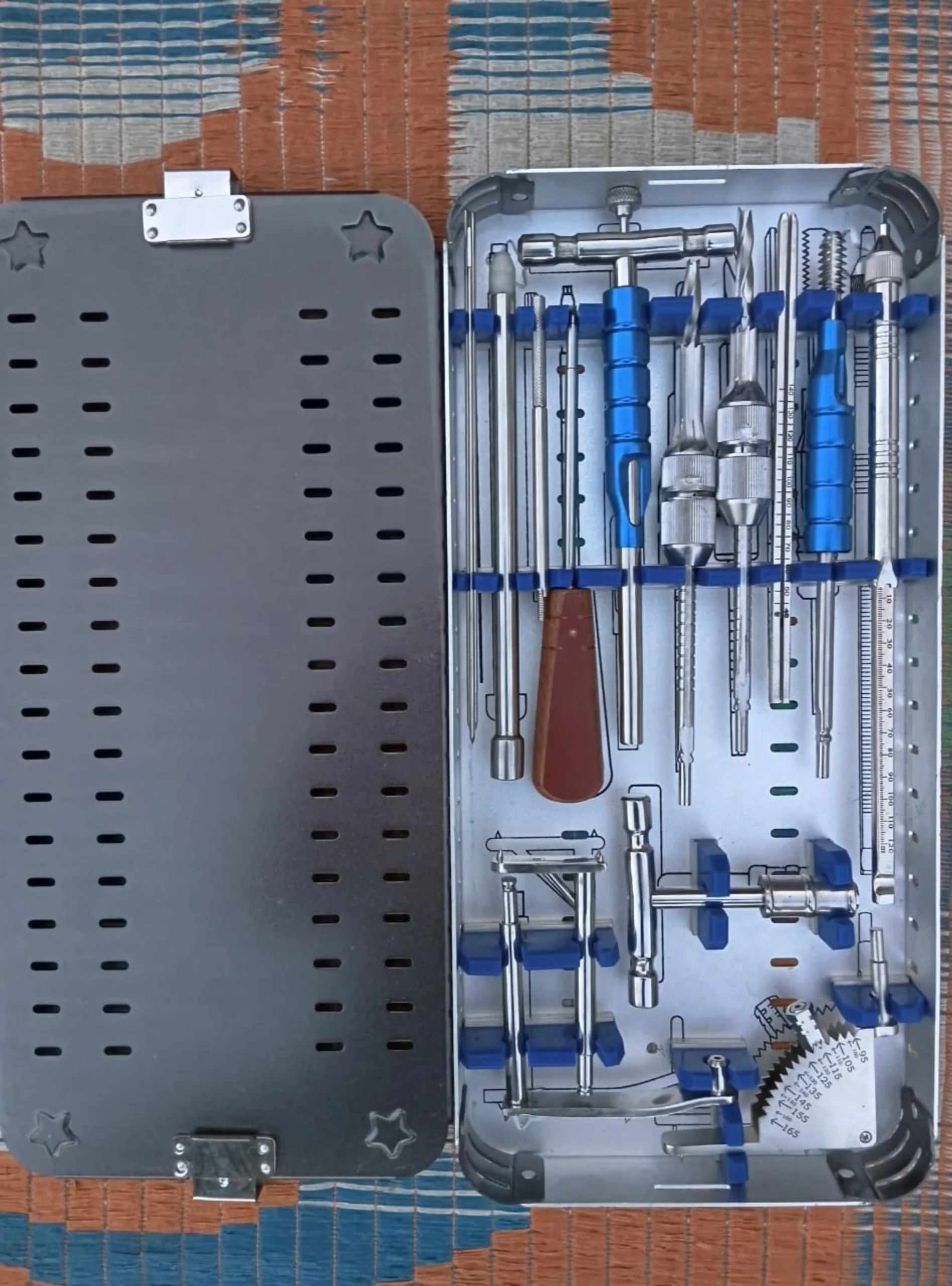 Our product portfolio includes a wide range of advanced tools such as DHS Instrument Set with Box, Large Fragment Instrument Set, Digital Femur Titanium Plate, Proximal Lateral Tibia Plates, and Rail Clamps in various sizes (300mm, 350mm, 400mm, 450mm). We also offer precision-crafted tools like Bone Awls, Vita Clamps, Titanium Kegs, Pik Kegs, Finger Plates, Bone Owl Bone Prov, Wire Tensioners, Bone Nibblers, Bone Cutters, Fibula Titanium Plates, Philos Plates, and Bullet Pik Kegs—each designed with precision for critical surgical applications. We are committed to supporting surgeons with instruments that offer high durability, ergonomics, and surgical precision.